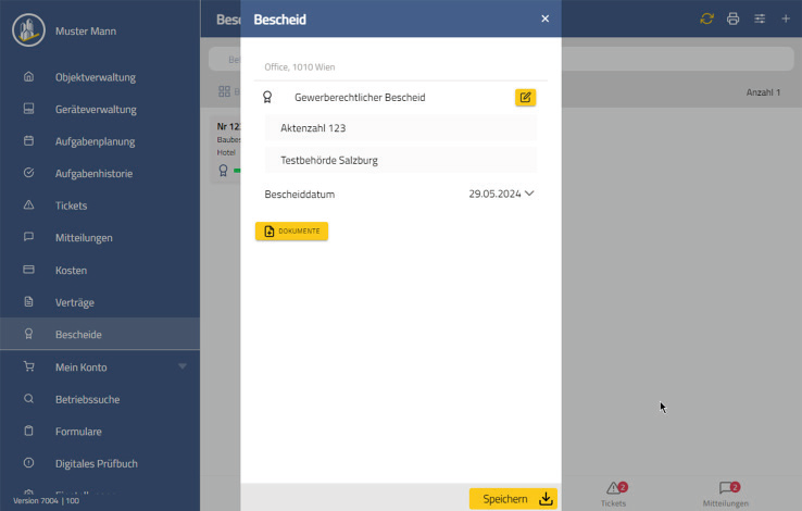 - Klicken Sie auf “Speichern”, um den Bescheid anzulegen.