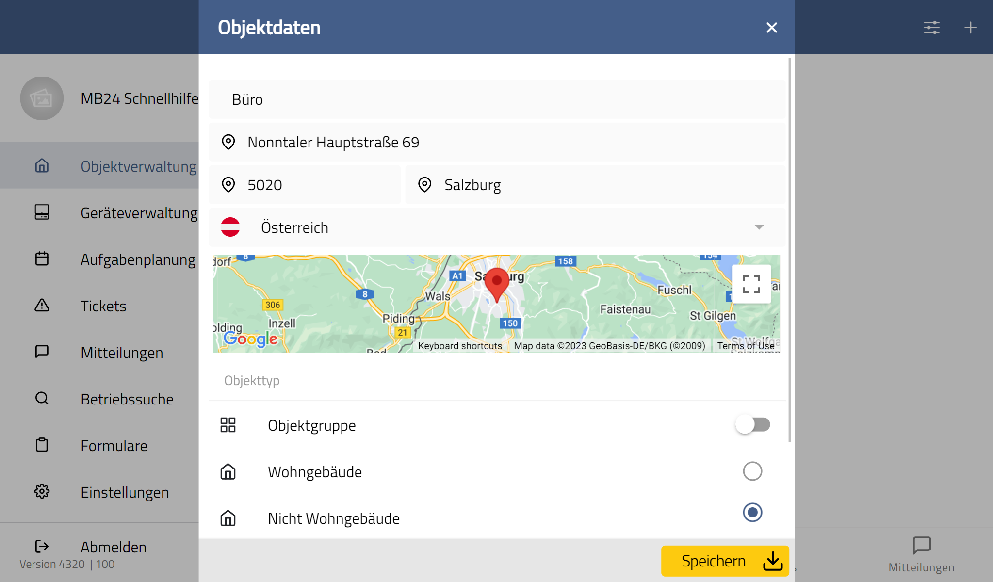Auf der obersten Ebene des Wartungskonzeptes von MyBuilding24 steht das Objekt. Ein Objekt kann ein Gebäude sein z. B. Ihr Büro.