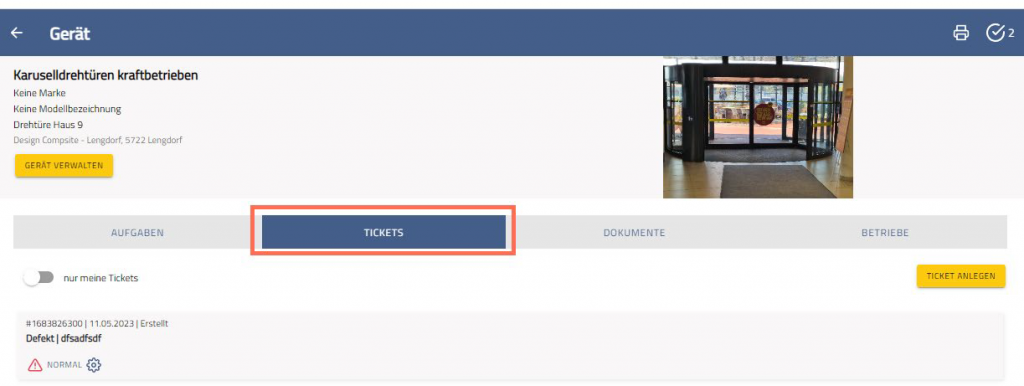 In der Einzelansicht eines Gerätes steht nun hierfür der Reiter „Tickets“ zur Verfügung.