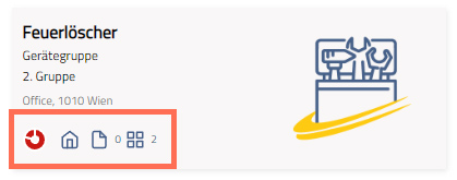 Die Kachelnavigation erlaubt es komfortabel zu verbundenen Daten zu navigieren. Z. B. Können Sie in der Objektverwaltung mittels Kachelnavigation zu den Geräten wechseln, die mit einem Objekt in Verbindung stehen. Die Kachelnavigation finden Sie im unteren Bereich einer Kachel.
